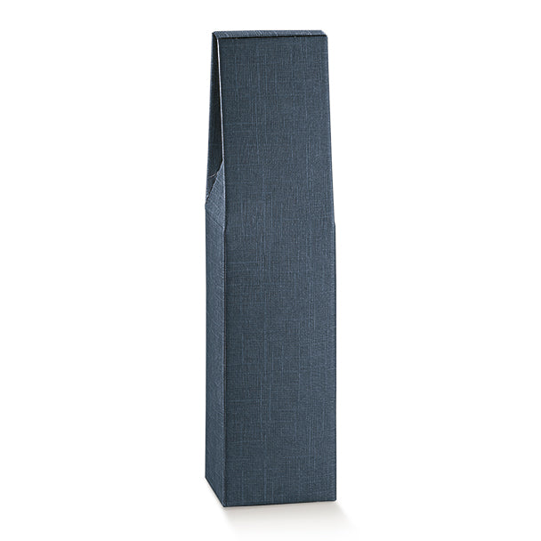 Wine bottle box with a silk effect texture and color (leather, red linen, etc.). An elegant and refined packaging for bottles, yet practical and durable, thanks to the convenient pre-cut handles. Suitable for all occasions, from corporate gifts to private events. The 2 and 3 bottle models come with a window separator. Customizable boxes available even in small quantities. Find out how by sending an email to info@plastidea.it